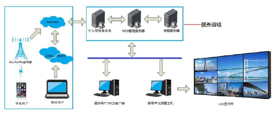 實現前端、區縣、地市三級垂直監管,固定網絡采用C/S、B/S 方式進行訪問,移動網絡通過手持管理終端(手機、平板等)進行監管;