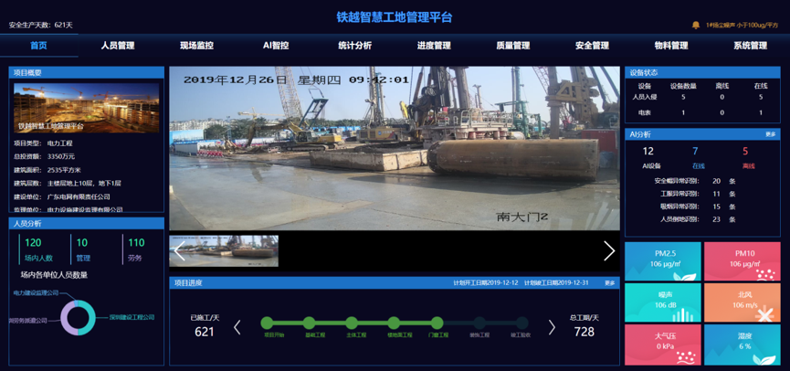 鐵越智慧工地解決方案基于物聯(lián)網(wǎng)架構(gòu),通過(guò)對(duì)“人、機(jī)、料、法、環(huán)”的感知監(jiān)測(cè),有效降低施工安全隱患,提高管理效能。采用公司自主研發(fā)的人工智能(AI)算法產(chǎn)品,為客戶(hù)的工地建設(shè)提供智慧化解決方案。